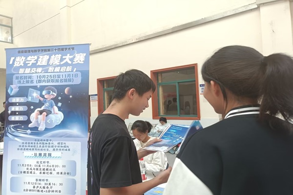 为顺应数字化时代对复合型人才的需求,助力学子提升建模与问题解决能力,江西财经大学信息管理与数学学院学术部联合数学建模协会将于11月2日开展第三十四届学生学术节数学建模大赛。作为学校第三十四届学术节核心活动,赛事以"以赛促学、以赛聚能、以赛育才"为目标,搭建数学爱好者交流竞技平台。数学建模作为连接理论与实践的桥梁,广泛应用于金融、人工智能等领域,市场需求迫切——本次大赛正是通过实战竞赛激发学子兴趣、提升核心能力,为创新型人才培养提供精准助力。