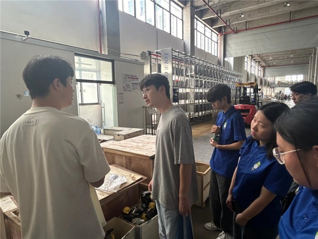 在浙江绍兴福元科技有限公司,实践团重点考察了其无人化染化料调配系统及绿色生产工艺的实际应用。企业通过自动化精准配液、全流程闭环管理等数字化手段,有效减少了化学品使用量和污染排放,大幅降低综合能耗。这一系列技术革新不仅实现了高效节能与清洁生产,也为纺织印染行业的绿色转型提供了可复制、可推广的实践样本,实现“墨色”到“绿色”的华丽转身。