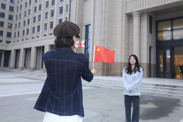 图3、4:同学们录制“旗递山河,情传四海”主题视频 裴璐瑶 供图
