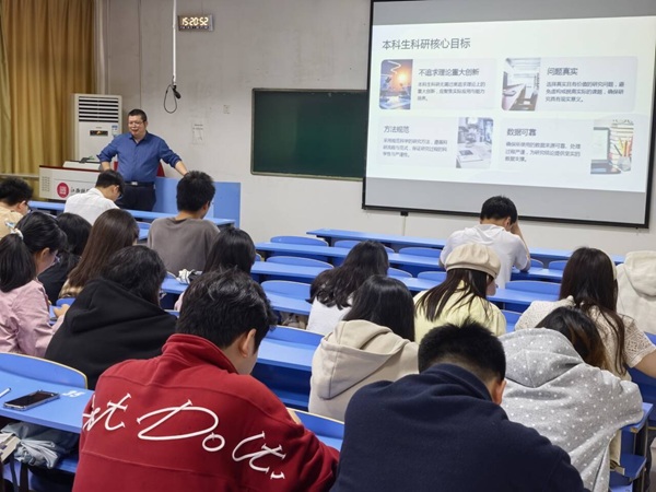 本次科创节系列活动层层递进、有机衔接,从科研入门到能力提升再到项目实践,全方位满足学生成长需求。“学术启航”专题讲座由学院院长陈思华教授主讲,围绕科研基本概念、研究方法与学术规范展开系统讲解,帮助同学们厘清科研思路、避开入门误区,现场互动积极、学术氛围浓厚,近170名学子到场参与,为后续参与科创项目筑牢理论根基。”砺数启航:数学能力竞赛”以线下笔试形式有序开展,采用团队初赛与个人复赛相结合的方式,由专业教师全程命题、评审与监考,赛制严谨、评分公正,既考验学生的数学功底与解题能力,也展现良好的竞技风貌,有效选拔出一批数理基础扎实的优秀学子,真正实现以赛促学、以考促练。“创梦启航:大创申报分享讲座”精准对接学生创新创业需求,由杨波老师围绕项目选题、申报书撰写、申报流程与评审要点进行全面指导,用实战经验为同学们答疑解惑,帮助大家提升申报技巧,打通从专业学习到科创项目落地的关键路径,显著增强学生项目申报能力与立项成功率。