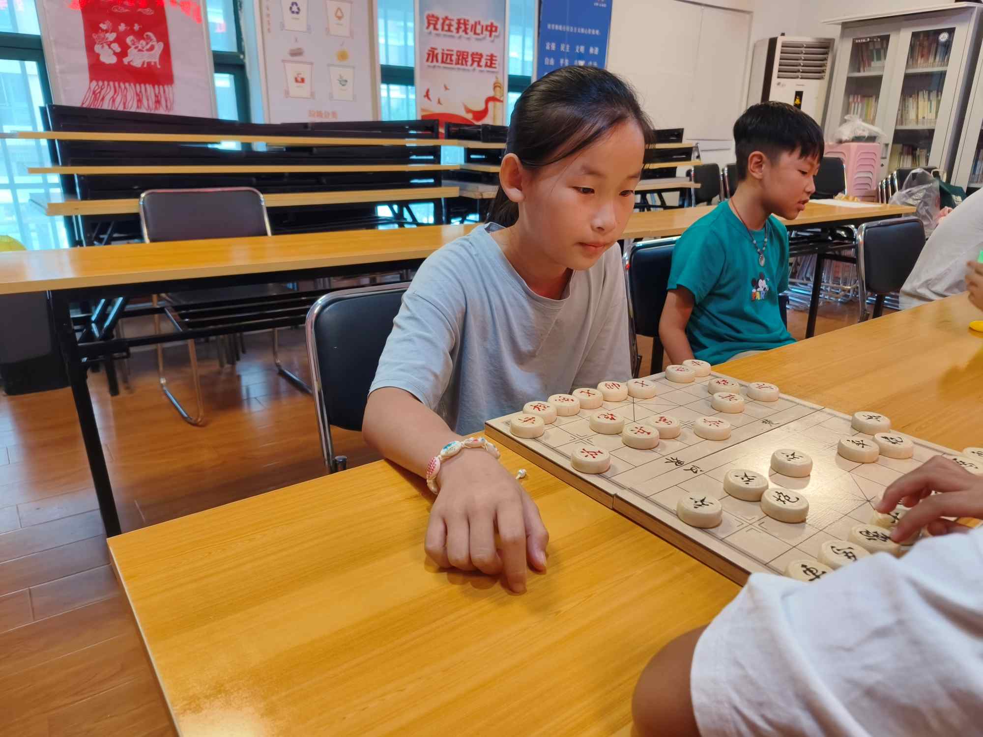 象棋桌上的“硝烟”则教会孩子们成长。从一开始的随意落子,到后来的蹙眉思考,再到输赢时的坦然握手,志愿者在旁轻声提醒:“每一步都要想清楚,就像做事情要负责任呀。”孩子们在棋盘间学会了遵守规则,也懂得了胜不骄败不馁的道理。