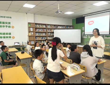 7月7日,实践活动正式启动。开场的“词语接龙”游戏率先打破陌生感,孩子们围绕“夏天”“快乐”等主题接龙,有的急得拍手,有的自信应答,现场笑声不断。