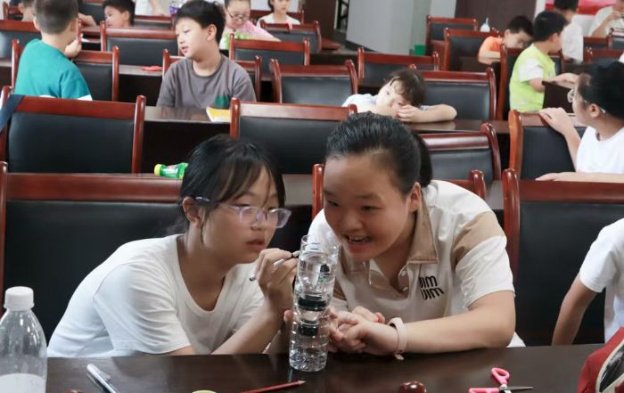 “江河不以水匮,计时必以漏刻。”微光团队以塑料瓶、吸管和刻度纸制作了简易水钟,演示了古代漏刻的等时性原理。当孩子们调节水流速度,观察水位变化与时间的关系时,老师借机科普“节水灌溉”:“古人用漏刻分配农田用水,今天我们也要珍惜每一滴水,像水钟一样‘精准’用水。”孩子们在实验中既理解了虹吸原理,更树立了节水意识。有学生提议:“回家后要把水钟放在菜园旁,帮爷爷计时浇水!”
