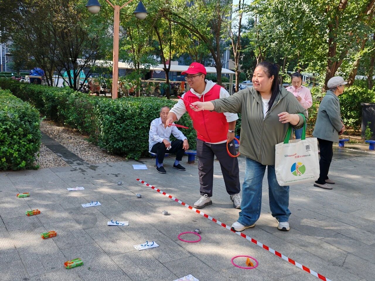 活动现场热闹非凡,6个游戏小组前都围满了跃跃欲试的居民们。志愿者们分工明确,有的提前摆放好游戏道具,有的耐心讲解规则。