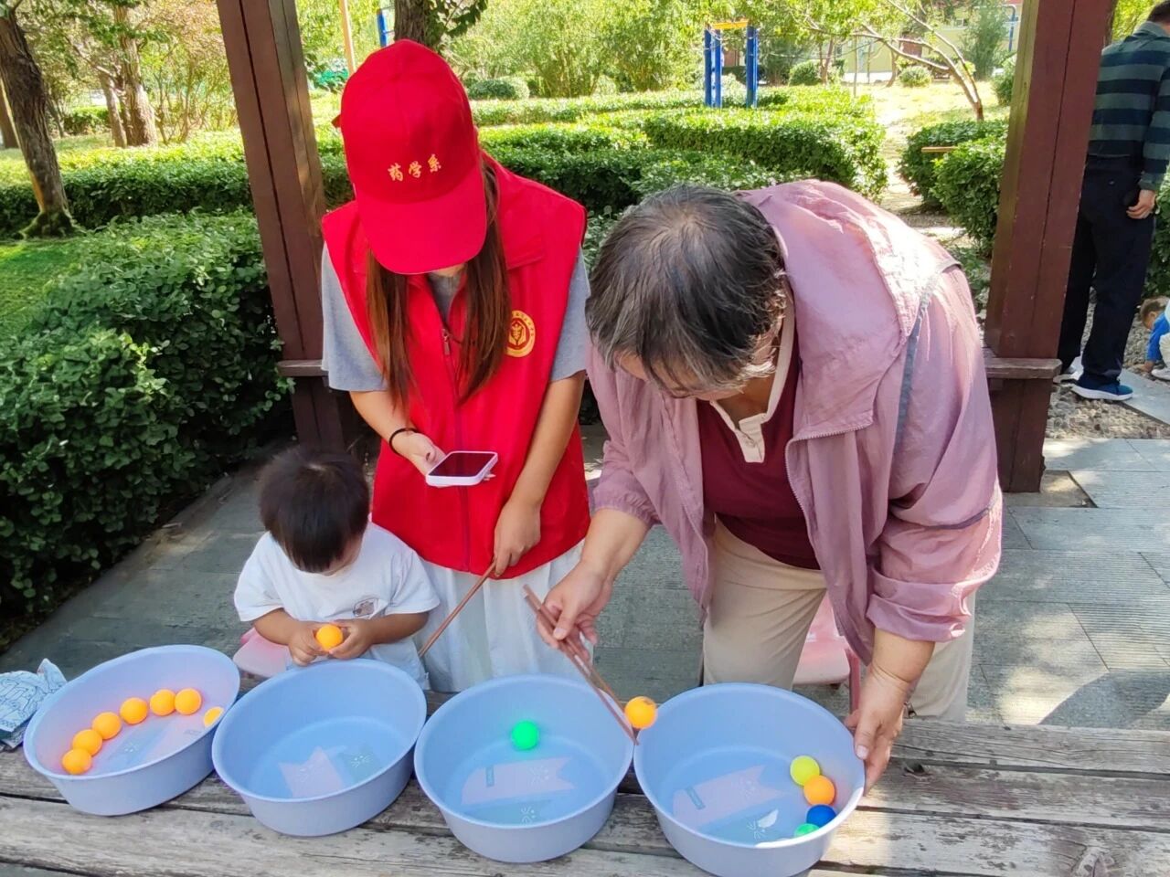 参加“筷”乐夹球的居民紧盯球、捏筷慢夹,屏气调姿生怕失手,引得大家也跟着揪着心;投保龄球区,居民将保龄球平稳滚出、撞向瓶子发出声响,成功的雀跃与畅快的笑声便一同回荡在广场中。