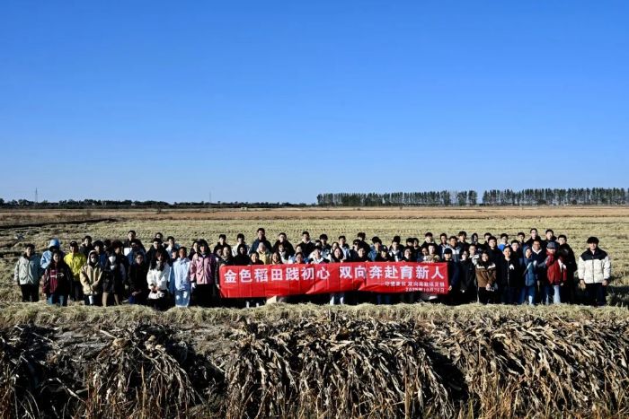10月26日,“金色稻田践初心双向奔赴育新人”主题劳动教育活动在盘锦市大洼区平安镇小房村成功举办。大连理工大学商学院党委、“守望麦田双向奔赴”项目组、劳动课学生及化学学院师生代表共同参与,在田间地头开启水稻收割沉浸式劳动实践。
