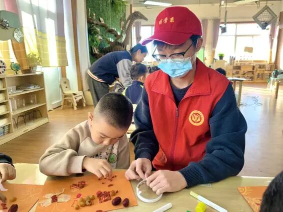志愿者们提前准备了桂花、玫瑰花瓣、艾叶、决明子等干燥中药材料,分组带领小朋友们动手创作中药画。在大家的巧手下,普通的中药材料变成了一幅幅充满童趣的创意画作,既展现了小朋友们的想象力,也让他们在动手实践中进一步感受了中药的形态之美,留存下独特的药香记忆。
