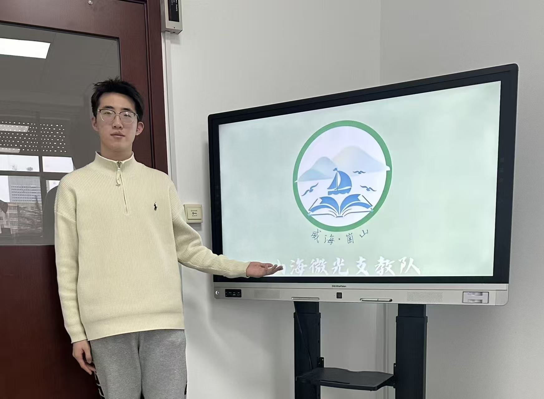 冬日的阳光穿过玻璃,在中心馆研讨室的桌面上铺开一片温润的淡金色。就在这样一个清澈的早晨,我们威海支教小队迎来了第一次线下见面。之前所有的联络都在线上,当终于见到彼此,互相笑着打招呼时,我心里悬着的那点陌生与忐忑,一下子消散了。我们几个人围坐在一起,先从自我介绍开始。每个人介绍自己的名字、学院、负责什么课。我能看见大家眼睛里闪着的光——那是属于少年的朝气,也是一份即将扛起的、沉甸甸的责任。虽然人不多,虽然少,可当话匣子打开,气氛很快就活络起来。