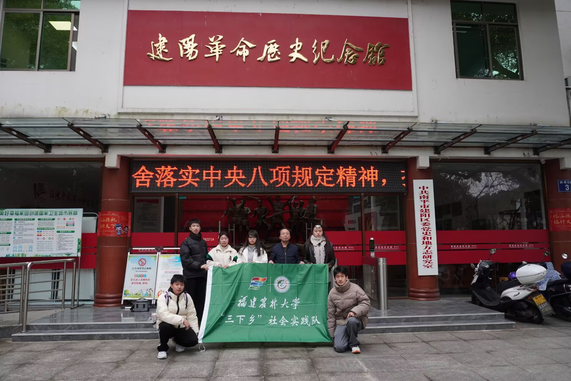 1月22日上午,福建农林大学青年马克思主义学习研究会“寻朱问道”跨学科实践队在探寻朱子文化遗产的同时,专程赴建阳革命历史纪念馆开展红色主题教育。此行旨在引导青年学子在历史的纵深中,深刻感悟中国共产党人的初心使命,理解红色文化与中华优秀传统文化之间的内在联系,筑牢信仰之基。
