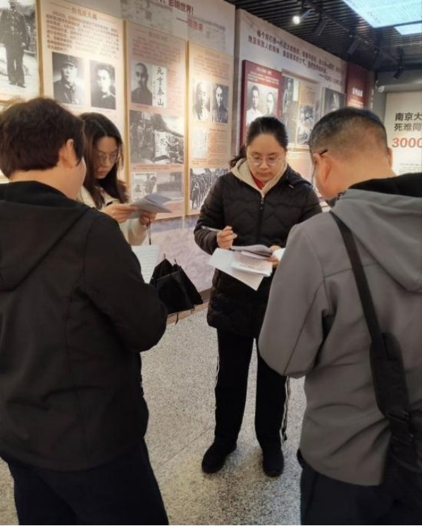 图为团队成员在李宗仁官邸给游客发放问卷 黄嘉钰摄