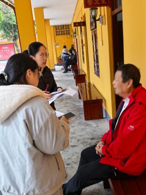 图为团队成员在李宗仁官邸与老党员访谈 梁雁冰摄