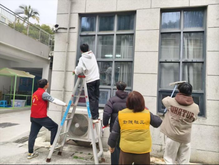 根据院方的安排,1月23日下午将在活动室举办音乐联欢活动。队员们到达时,正值福利院的休息时段,院里一片祥和宁静。正逢腊月,队员们协助院里完成大扫除。撕下旧窗花、清扫地面、擦拭玻璃,队员们有条不紊地配合着。准备参加活动的孩子看到在忙碌的队员们,连忙拿着工具搭把手,活动室很快就干净整洁一新。在亲密的兄弟姐妹相称中,队员们感受到这些特殊群体身上坚韧的力量和纯真的感染力。