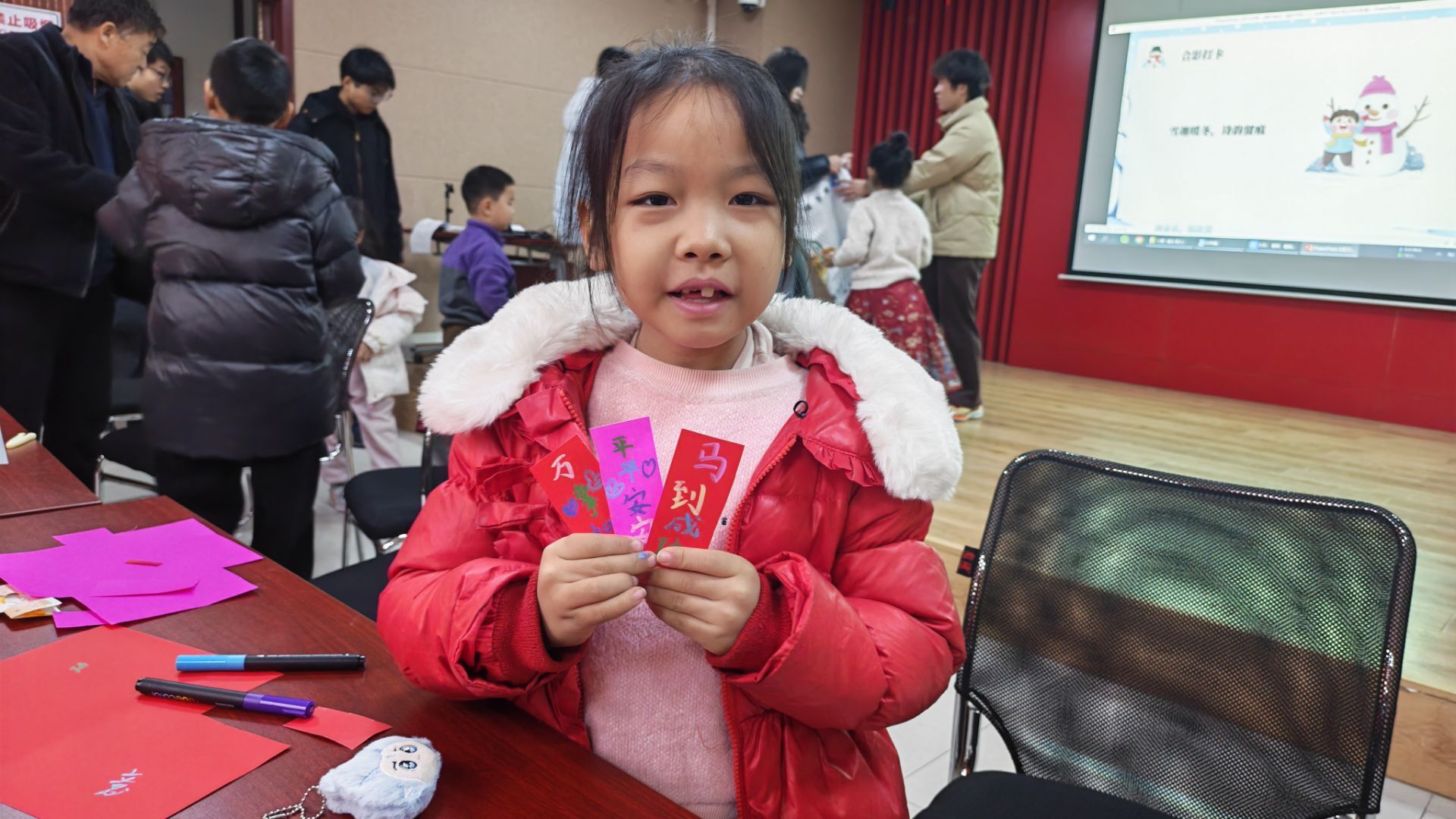 活动伊始,李昊颖以生动的语言和精美的PPT展示,为孩子们细致讲解诗词内涵、大寒起源及传统习俗,一幅幅浓缩着民族情感与智慧的文化图景在孩子们眼前徐徐展开。在知识问答环节中,孩子们踊跃举手,争相作答,在轻松活泼的互动中巩固所学知识,对大寒背后的历史渊源与文化意义有更深刻的认识。