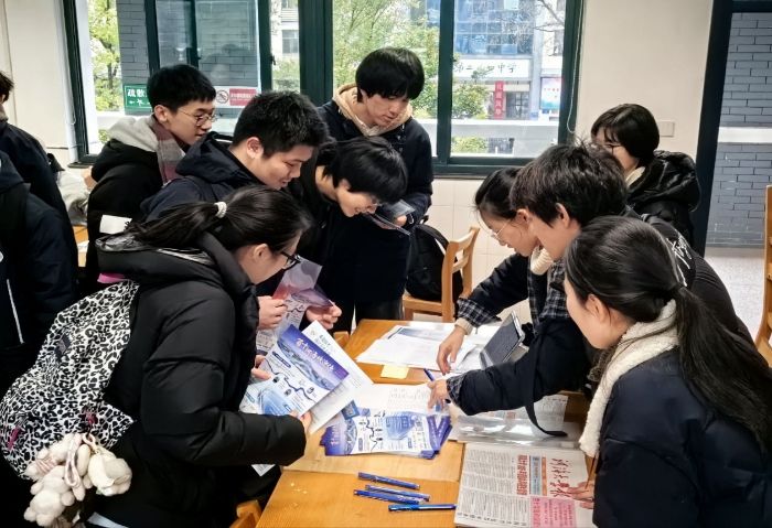宣讲会后,团队成员在教学楼设立了咨询摊位,与学弟学妹进行一对一、面对面的深入交流。现场气氛热烈,同学们纷纷围拢过来,有的仔细翻阅招生手册,有的就心仪专业的课程设置、录取分数线提问,还有的扫码关注河海大学招生信息网。团队成员们耐心解答疑问,用生动的案例和实用的信息,为学弟学妹们的升学规划提供了具体建议。