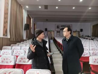 团队成员在安阳一中报告厅听取宣讲建议 团队成员与高中王老师合影并沟通
