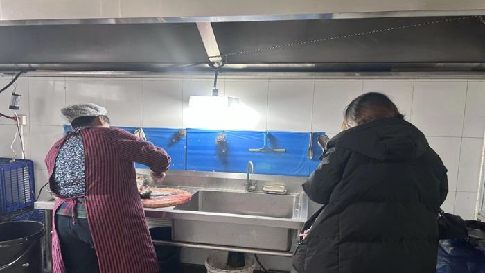 在新发饭店的拍摄现场,队员们的身影忙碌而专注。“选鱼必须是黄河口野生鲫鱼,肉质才够紧实;去黑膜要彻底,不然会影响汤的鲜味;慢炖得保持微沸,至少40分钟才能出味。”传承人一边演示,一边向队员们耐心讲解。为了完整记录每一个关键环节,队员们蹲守灶台旁近3个小时,反复调整拍摄角度,确保精准捕捉技艺细节。“这些手工技艺全靠口传心授,我们要用镜头把它完整保存下来,这是对非遗最好的尊重。”队长邢晨瑞说道。