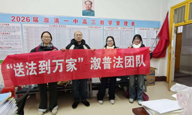 活动尾声,普法团队与溆浦一中师生共同拉起“‘送法到万家’溆普法团队”横幅合影留念;随后,团队还与学校教师代表单独合影,并就校园法治教育常态化开展的方向进行了交流。