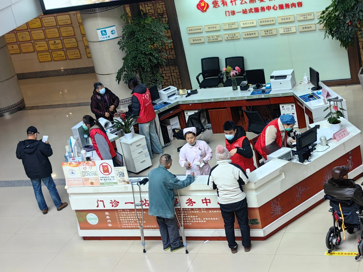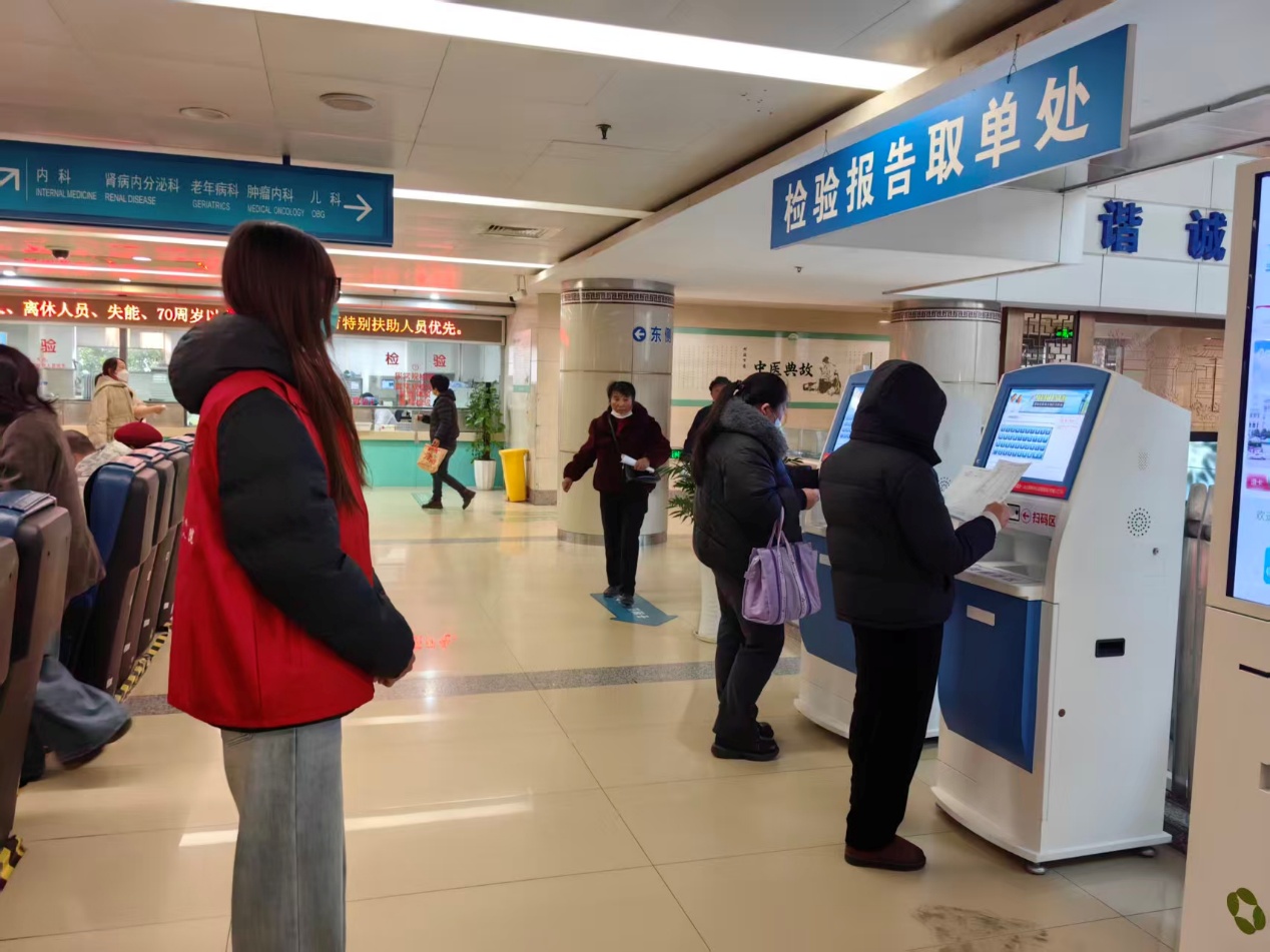 在门诊一站式服务中心与检验报告取单处,志愿者们坚守岗位,为前来就诊的群众提供全方位便民指引。他们耐心协助老年患者操作自助取单机、指引就诊科室、解答医保咨询,主动帮扶行动不便的患者,用细致入微的服务,为患者排忧解难,有效提升了就诊效率,缓解了医院就诊高峰期的服务压力。