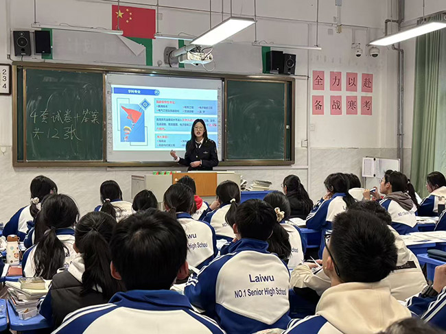宣讲当天,团队宣讲活动在济南市莱芜第一中学65级3级部2班教室内开展。队员身着制服,以饱满的热情、清晰的表达,向同学们全面介绍了各学院的特色优势、专业设置及校园文化生活,通过分享自身在大学期间的成长经历与学习心得,生动展现了海大学子积极向上的精神风貌,赢得了同学们的积极响应。为增强宣讲的吸引力与互动性,团队成员精心准备了宣传资料,包括招生简章、宣传海报等。在互动问答环节,同学们踊跃提问,围绕专业选择、高考备考、大学生活适应等方面展开深入交流,团队成员耐心细致地一一解答,现场气氛热烈融洽。