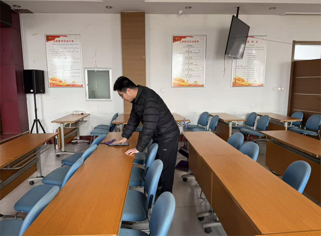 图为实践团成员打扫会议室卫生