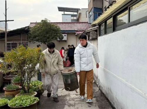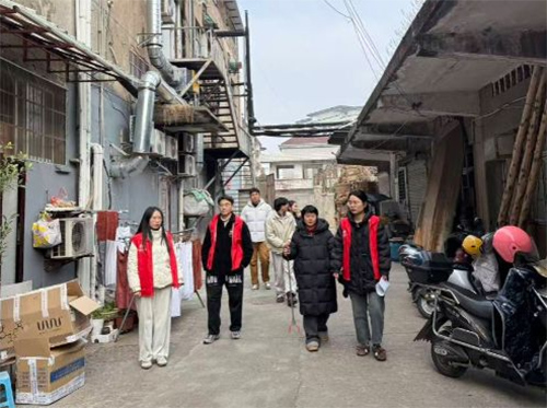 图为实践团成员在社区打扫卫生