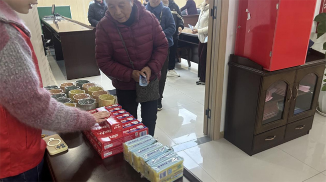 志愿者们还为老人们送上精心准备的肥皂、牙膏、杯子等实用生活物资,一句句亲切的问候、一声声暖心的叮嘱、一份份包含心意的礼物,让活动现场洋溢着温情与暖意。