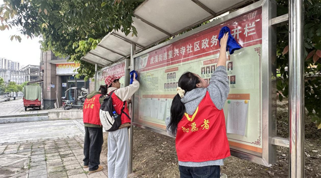 在反诈宣传的同时,志愿者们也深入社区公共区域开展清洁行动,对小道、宣传栏、停车场、座椅及垃圾桶周边等指定区域进行全面整理。