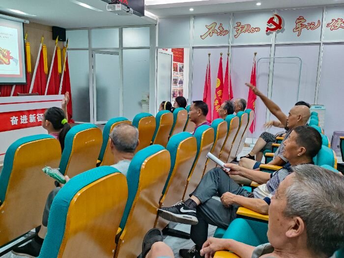 图为南通市崇川区文峰街道三里墩社区居民积极参与抗战知识互动环节 沈琳华摄