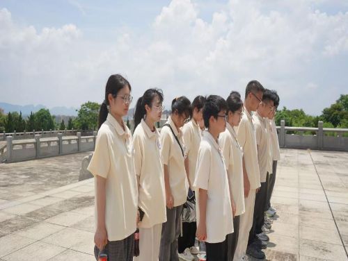 图为社会实践团全体成员向龙州起义的烈士们鞠躬(通讯员韦覃菲摄)