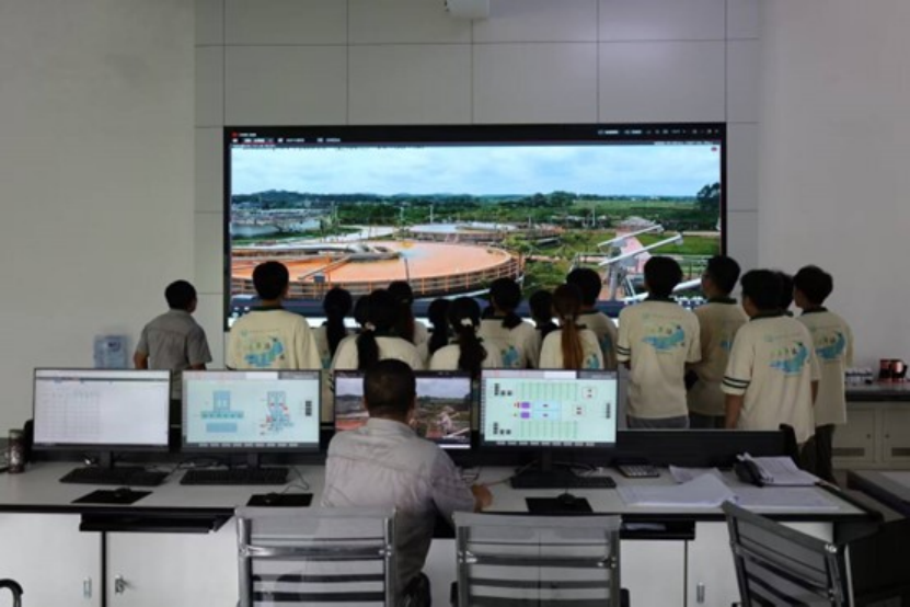 在中控室,数字化监测平台与智能调控系统稳定运行,精准数据反馈、自动化操作流程,充分展现“智慧水务”对污水处理的科技赋能,让实践团深刻理解科技驱动生态环保的实践路径。