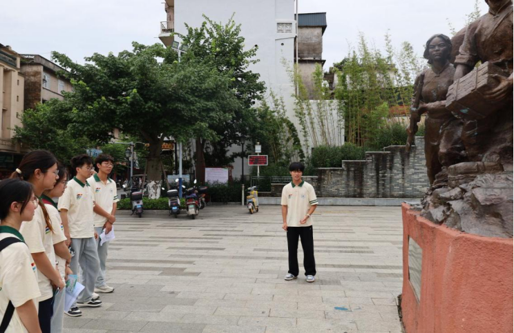 在冯子材雕像前,实践团成员集体聆听“镇南关大捷”的战斗故事——年近七旬的冯子材率部浴血奋战,击退法军入侵,捍卫国家领土完整。“英雄虽已远去,但‘保家卫国、寸土不让’的精神永远激励我们。”一位成员的感慨引发共鸣。