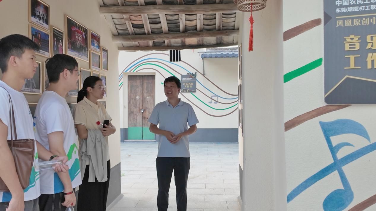 直播环节:用镜头记录,传播塘厦独特风情完成与村委的深度访谈工作后,队员们马不停蹄地开启了直播宣传。队员们将直播镜头对准了凤凰岗老围,自北宋时期从福建移至东莞常平土塘,后迁塘厦石鼓布尾,再迁居此地。凤凰岗古村落是一座深受客家文化影响的广府村落,至今仍保留祠堂、围门、围墙等,其中,祠堂有启一黄公祠、麟超黄公祠等6座祠堂,启一黄公祠最为气派,无论从建筑用材,还是建筑布局,乃至雕刻彩绘等,既能体现黄氏家族的尊宗敬祖之义,又寄寓对黄氏后人对科举期许。此外,队员还介绍了中国农民工打工歌曲创作基地,这是塘夏镇多年打造的群众品牌文化活动,已举办音乐晚会多场,引无数音乐爱好者和群众前来观看,积累了深厚的打工音乐文化底蕴。