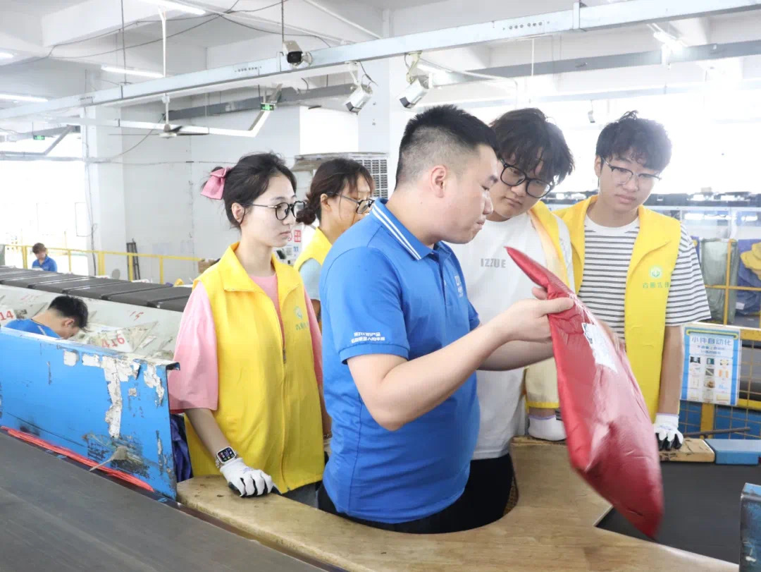 座谈后,实践团师生在工作人员的指导下,进行了专业实践操作。高效运转的智能分拣线,让同学们真切地体会到现代物流设备对于提升物流效率的重要作用。半自动化设备与人工操作流畅协同,其高效作业场景让同学们有了课程理论学习之外的收获。亲身体验分拣作业后,同学们更深刻体会到:看似简单的扫码、分拣动作,实则蕴含专业功底——快速精准识别二维码、敏锐排查包装异常,正是专业素养与细致态度的体现,快递单上“四段码”所承载的复杂路由信息,更让大家直观领悟到物流网络运作的精密与高效。