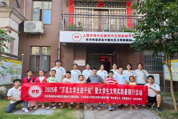 为积极响应国家“数字中国”建设与文明实践号召,在院团委书记郭兆羚老师带领下,江西财经大学智绘“三色”实践团队于7月24日至31日赴江西省上饶市,充分发挥信息学科专业优势,开展了以“产业转型调研”、“红色基因传承”、“社区智慧服务”为核心的暑期社会实践活动,以青春智慧服务地方发展。