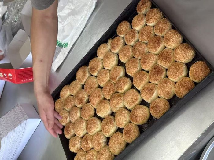 随着烤箱关闭,温度上升,烧饼的香气逐渐弥漫下来。当烤箱打开,金黄酥脆、香气扑鼻的黄桥烧饼呈现在眼前。咬上一口,外皮酥脆,內馅鲜香,感受着传统美食的独特魅力。