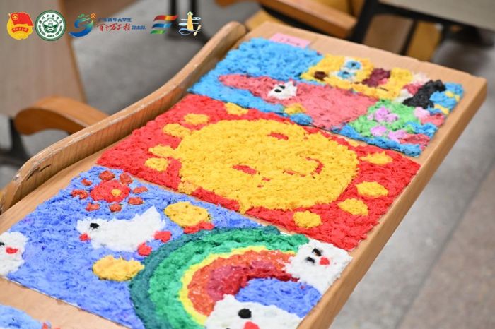我们选择在南澳岛开展纸浆画教学,正是考虑到当地孩子对自然与海洋的亲近感:“希望他们能把对家乡的热爱融入作品,让非遗工艺与本土文化碰撞出火花。”下课铃响时,多数孩子已完成作品的主体部分,正小心翼翼地将其放到教室后排的通风架上晾干。这些带着孩子气的作品,虽略显稚嫩,却承载着孩子们对非遗文化的初体验。在这堂特殊的美育课上,废旧纸张蜕变成艺术品,非遗的种子也悄然在孩子们心中扎下了根。