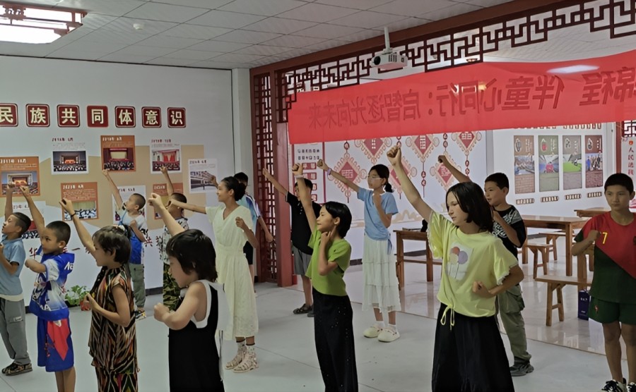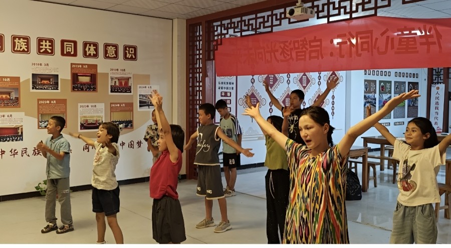 7月14日的成果展示环节,成为孩子们的“小舞台”。熟悉的旋律响起,孩子们排成整齐队伍,挺胸抬头完成完整舞蹈:抬手比心时似托起梦想,踏步跳跃间满是朝气,握拳加油时透着坚定。稚嫩却认真的动作,搭配欢快的歌声,吸引社区居民驻足鼓掌,现场充满欢乐与自豪的氛围。