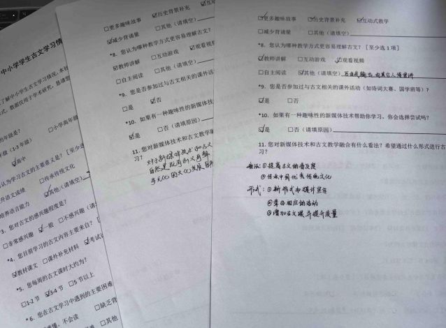 此次调研进一步凸显了加强中小学古文教育的现实意义。“要让古文‘活’在当下,既需要打破课堂的边界,也要回应时代的脉搏。”实践团队队长赖洪霄总结道。团队成员表示,未来将持续关注古文教学的改进实践,努力让调研成果落地生根,转化为推动教育变革的实际行动。